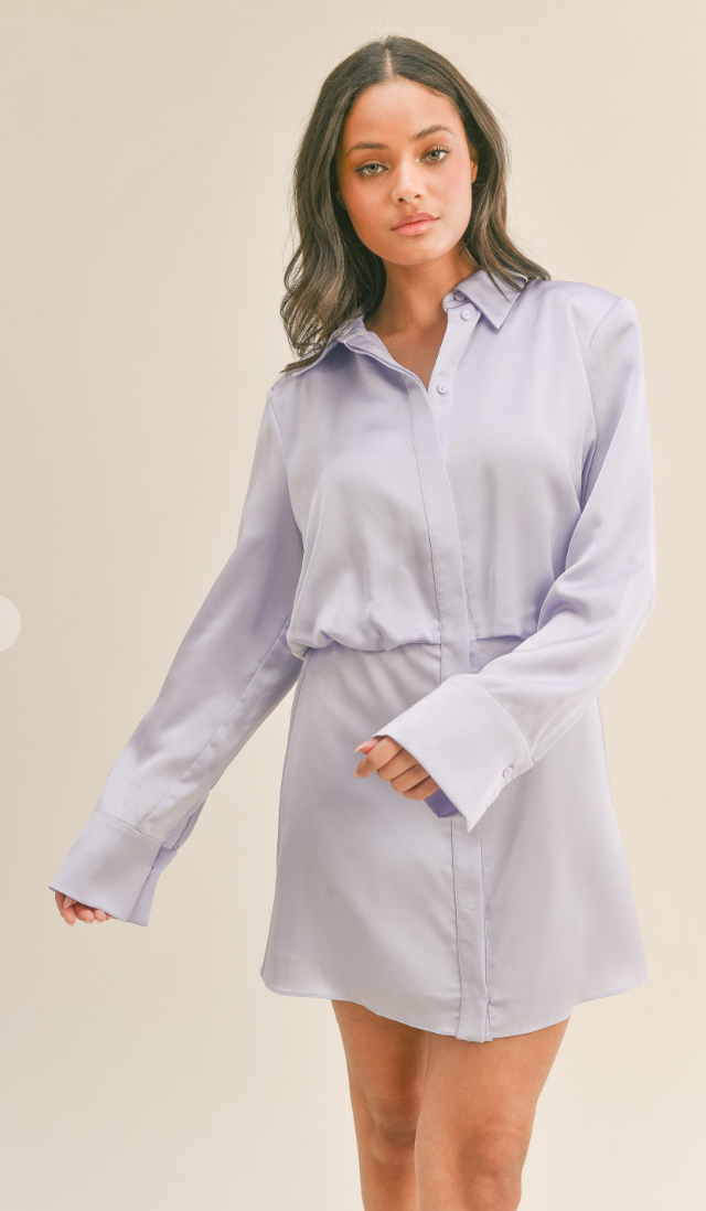 This chic dress is the perfect shade of purple. The buttons in the front are functional. Dress has shoulder pads that can easily be removed. Waist has slight stretch.